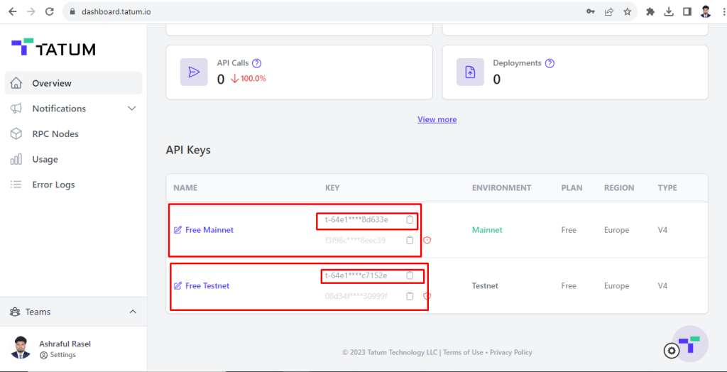 Admin / Site owner must sign up Tatum.Io before proceeding.