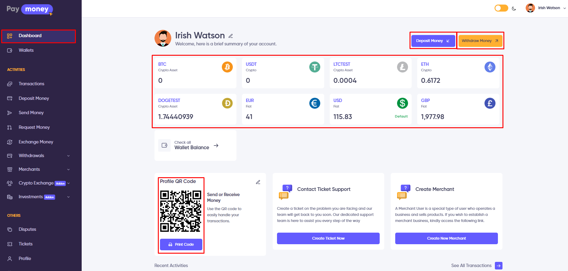 - Print their profile QR code and use it to send or receive money by scanning it.