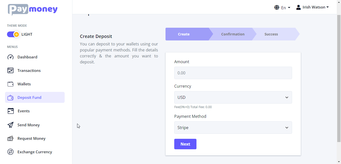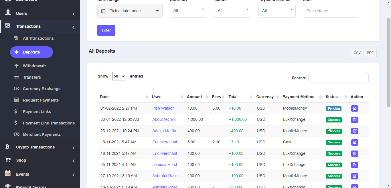 — once, admin changes the deposit’s status to success the amount will be added to the user’s wallet.