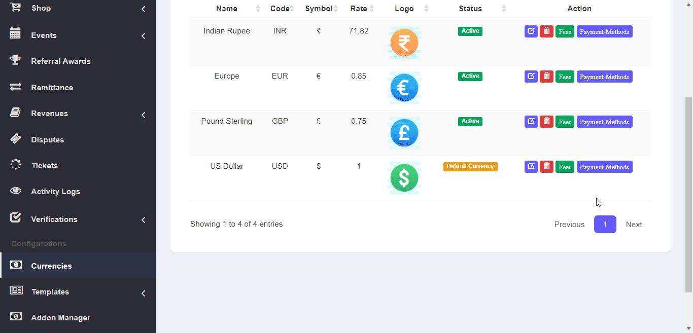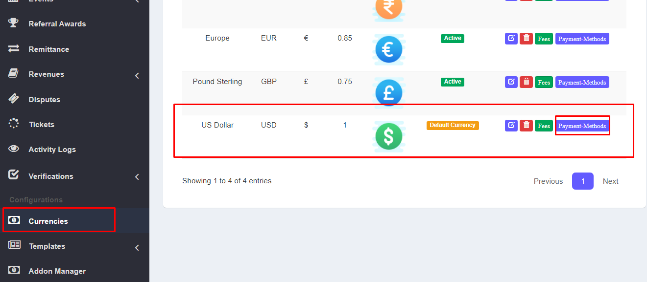 – Go to admin->currencies. Select payment-methods for the currency on which you want to add banks.