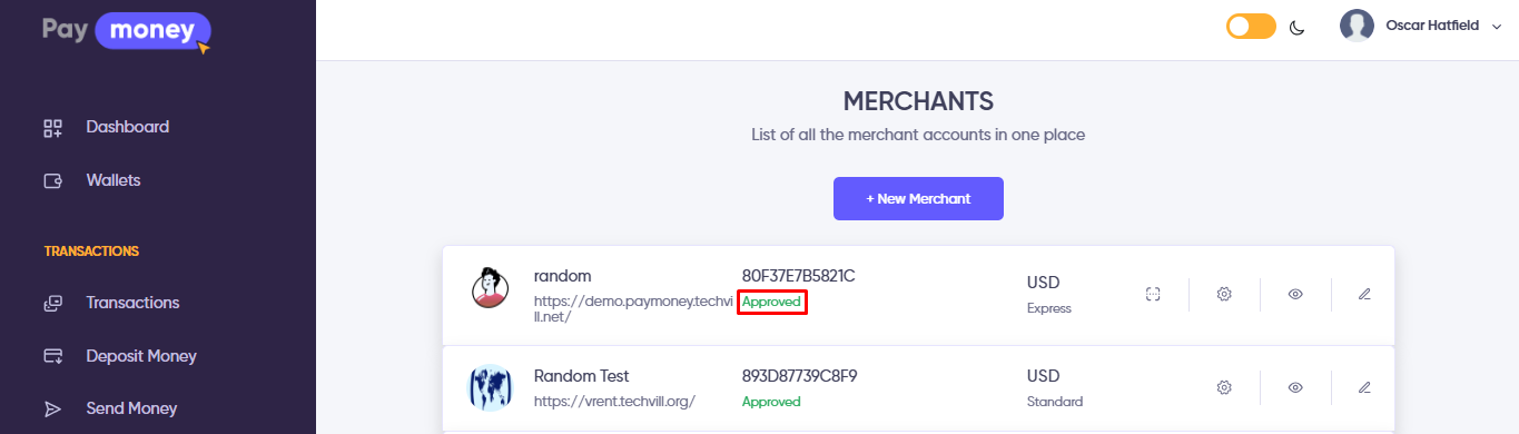 After changing the status from Moderation to Approved in the admin panel, the updated status will be reflected in the user panel for the merchant.