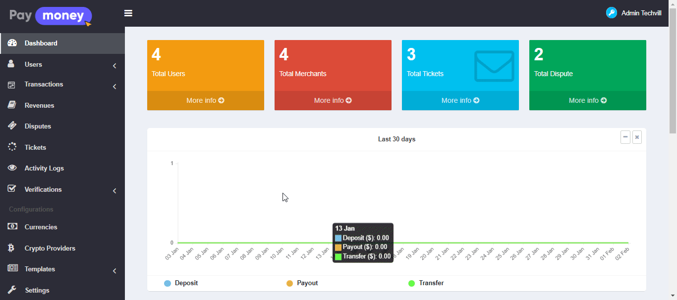 — PayMoney allows you to set fees and limits to each currency.