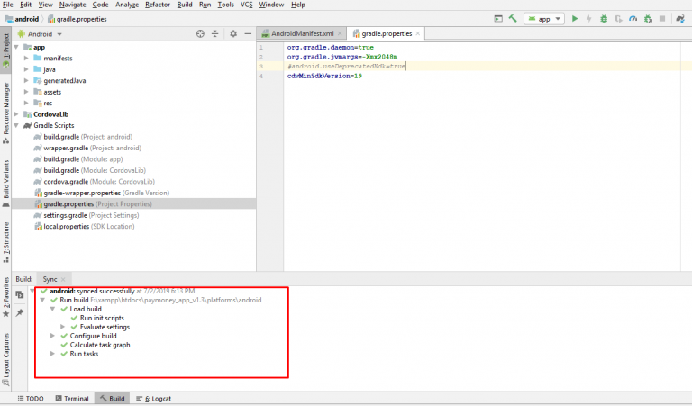 Android studio will build again. Wait for few moments. You will see a popup indicating “locate” and analyze (on bottom right side).