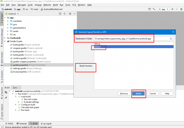 Select “Release” and click on “Finish” to complete signing the app bundle (see below screenshot)