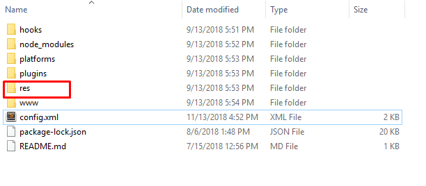 v) Delete the res folder from your project root and keep the new res folder with your custom app like below screenshot.