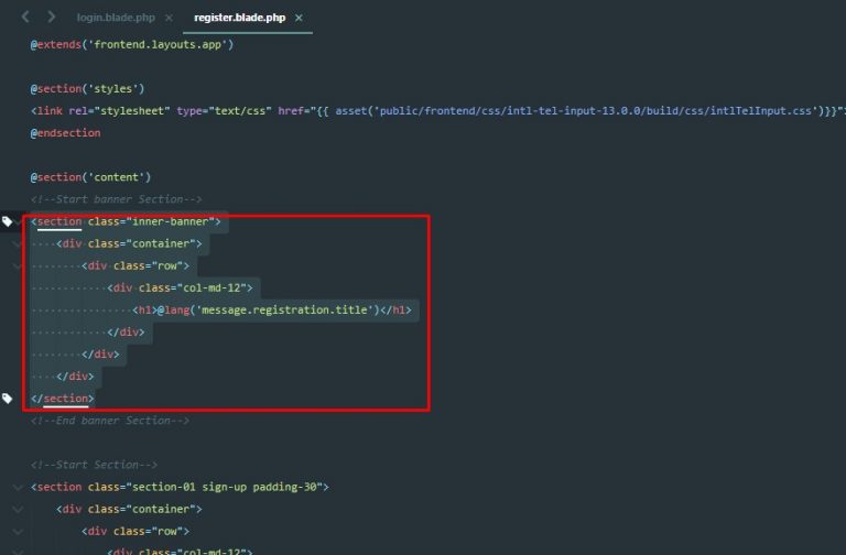 and (resources/views/frontend/auth/register.blade.php) pages