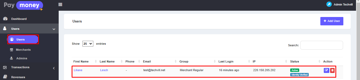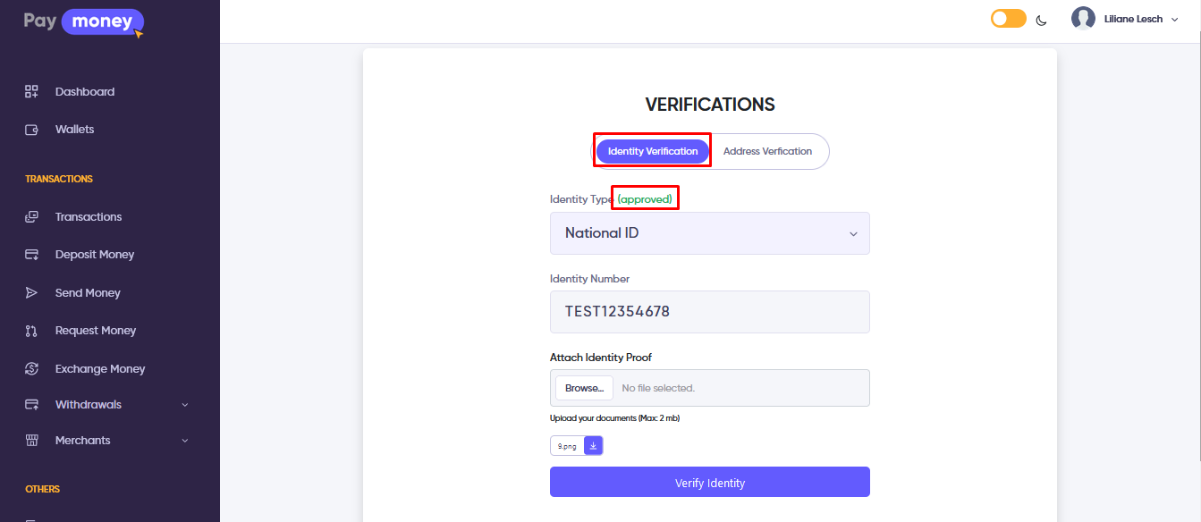 In the admin panel, the user list will display Identity Verified next to users who have completed the verification process. Additionally, in the user profile, the status will show as Approved. You can refer to the screenshots below for visual clarification: