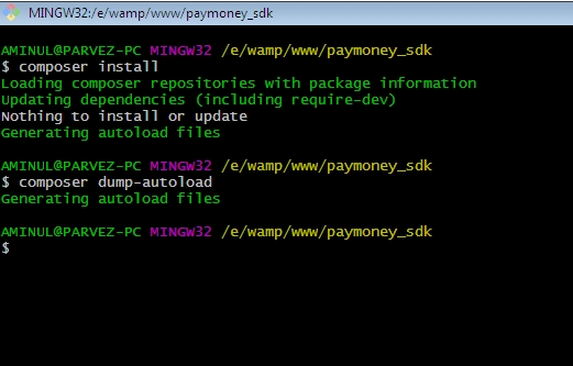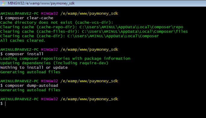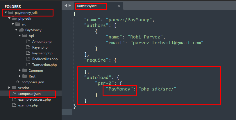 You must change the property ‘PayMoney’ in (autoload->psr-0) of (php-sdk/composer.json) file to your desired name