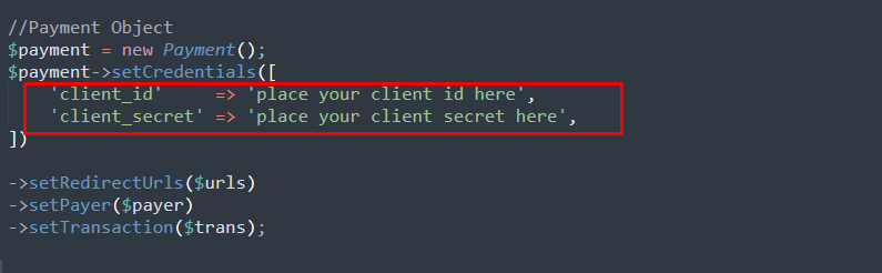 c) MUST place the client_id and client_secret in the setCredentials function.