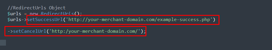 d) Set your other site success and cancel location in setSuccessUrl and setCancelUrl functions respectively.