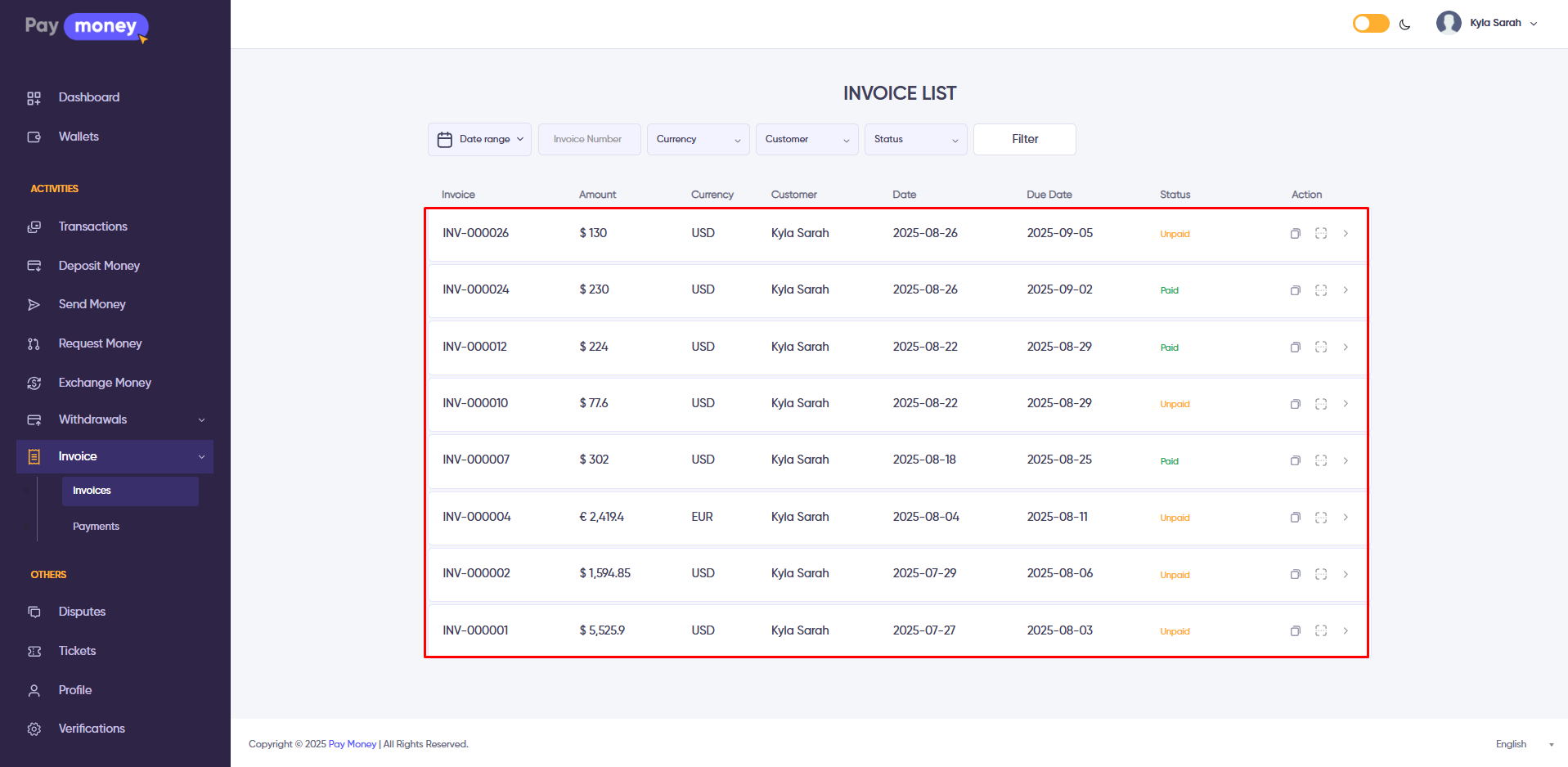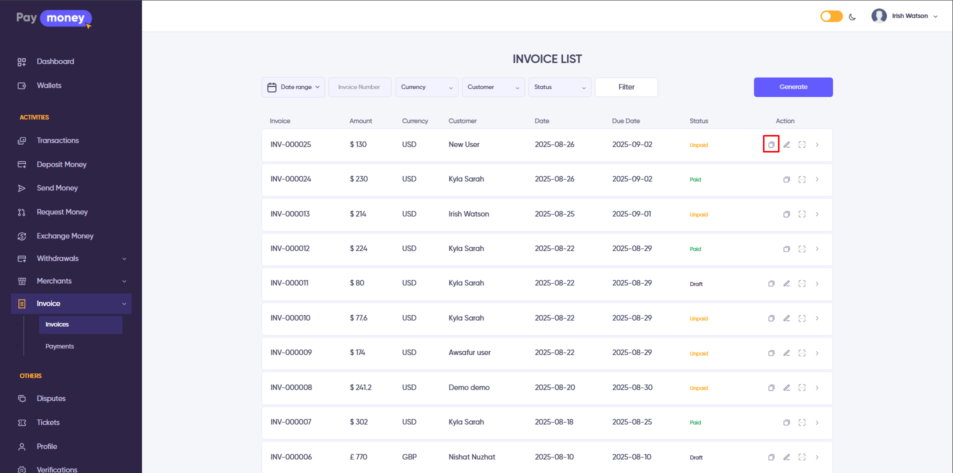- Invoice Link – Merchants can copy and share the invoice URL.