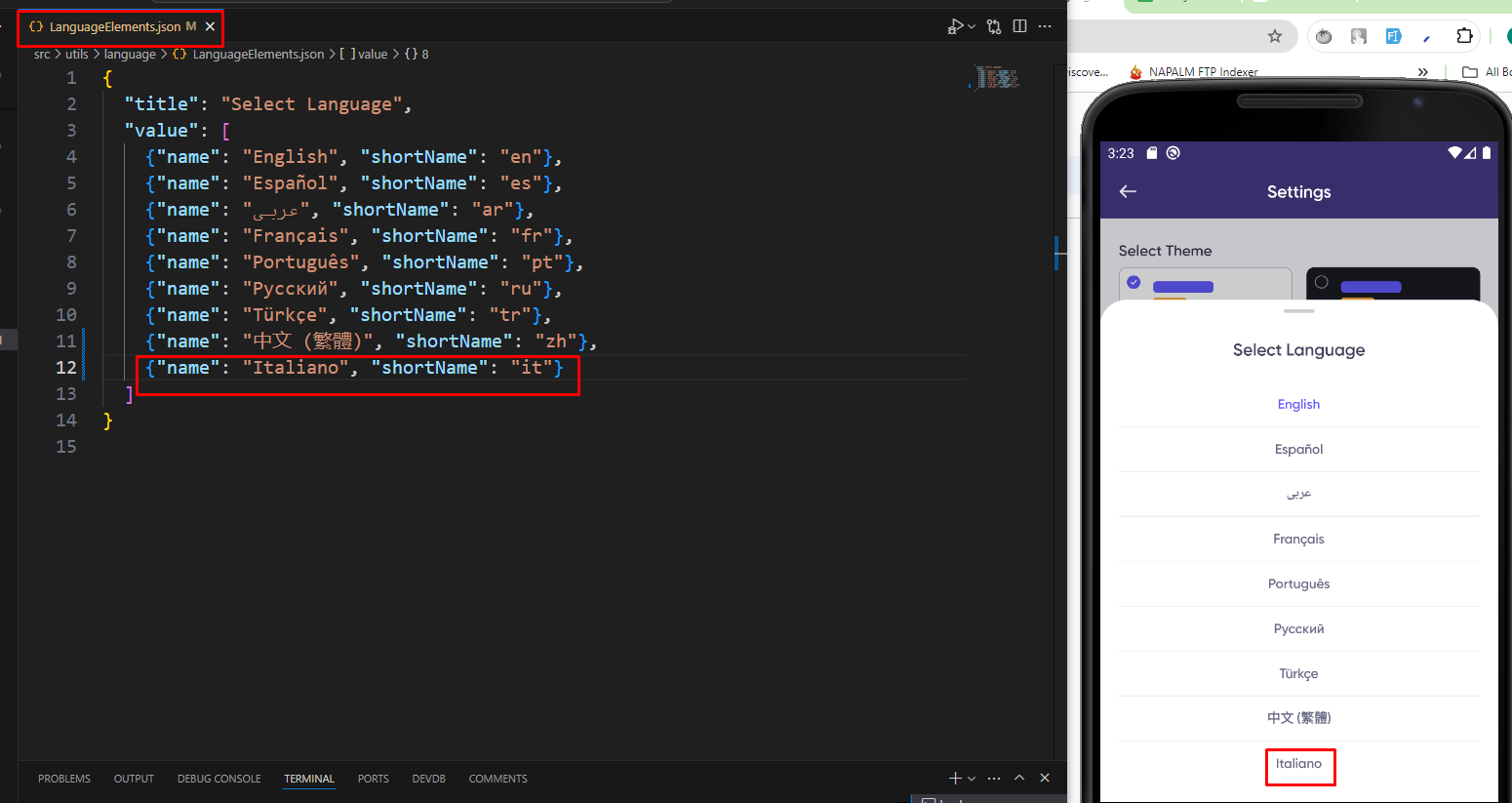 Therefore adding a new language needs to add a new key value pair as name and shortName. Suppose Any user wants to add a new language, it could be Italian then the key value pair would be:
