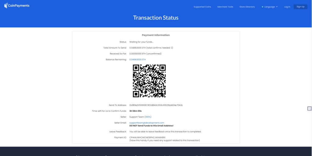 Once the required confirmations are received, the funds will be credited to the Admin CoinPayments account and Your transaction will be automatically updated from pending to successful.