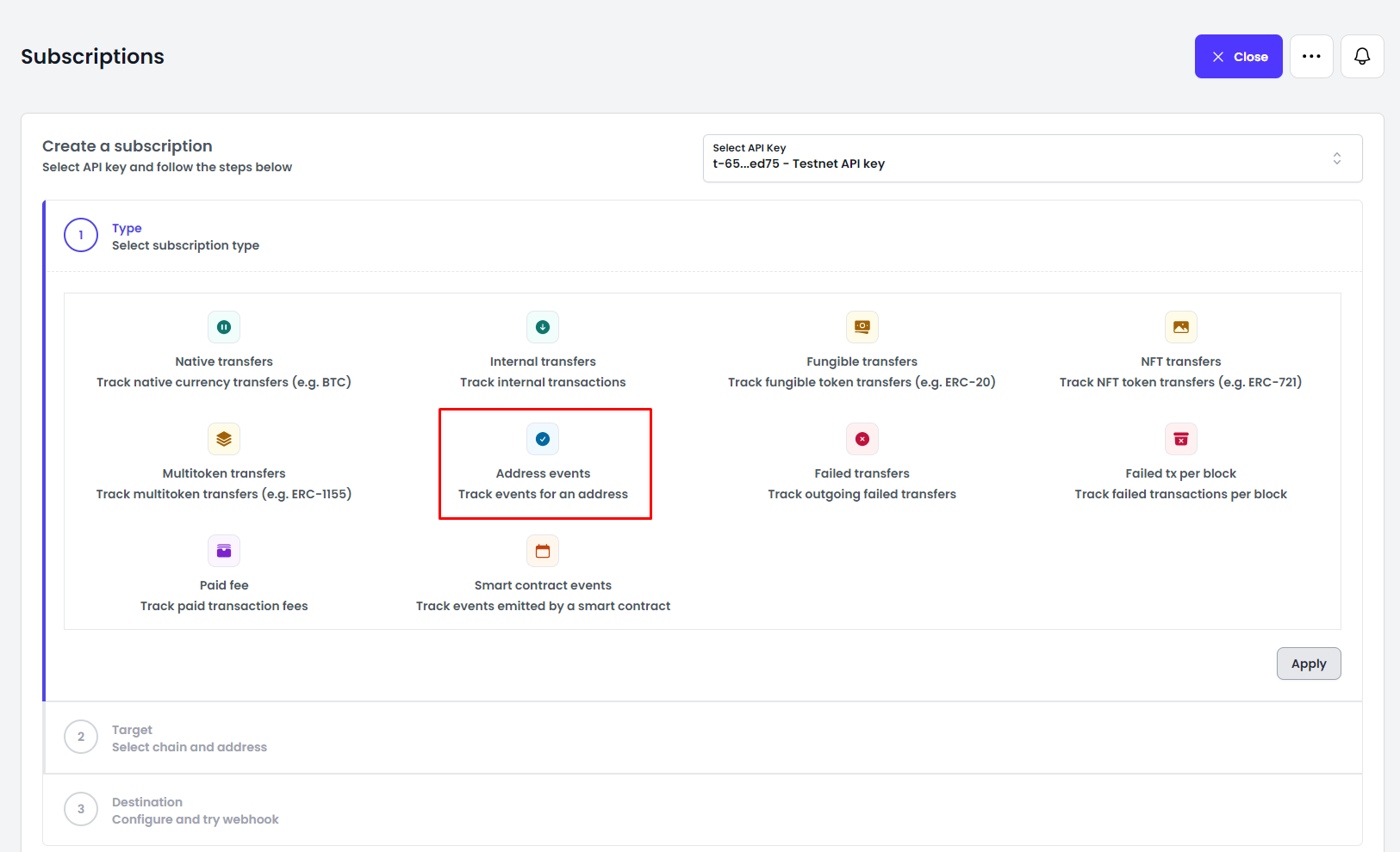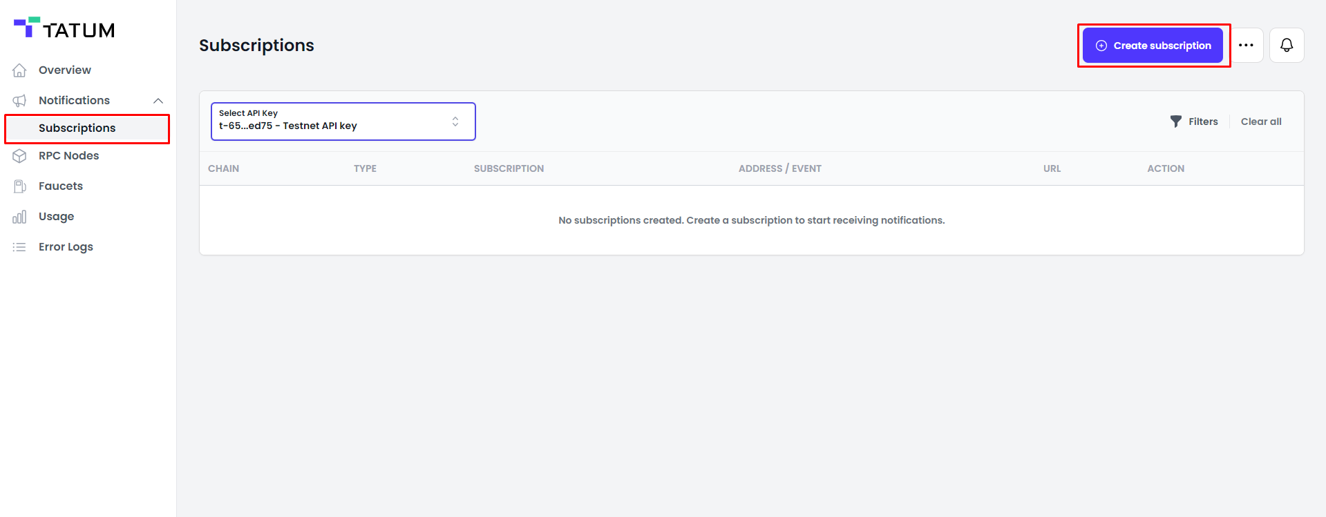 1) Navigate to Tatum IO Dashboard > Subscriptions.