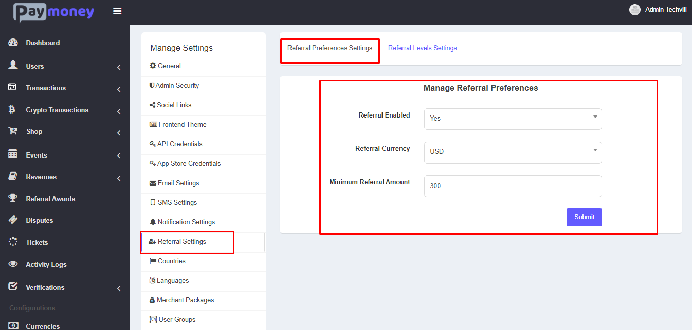 2) Admin must setup referral levels – in admin/settings/referral-settings