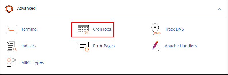 - Login into your cPanel and search for Cron Jobs. You can find Cron Jobs in the advanced section of your cPanel dashboard page.