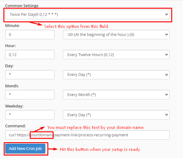 Go to your Cron Jobs option and set up the Cron Jobs settings. Our suggestion is you should initiate a Payment link Cron Jobs once every day or every 12 hours.