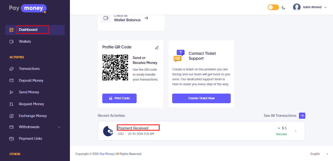 How to view payment links details and transactions from user panel?