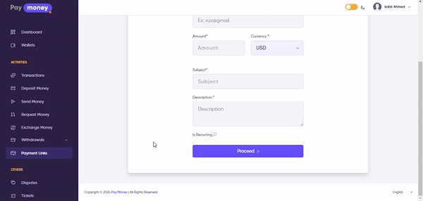 The user who is creating the link must give the copied payment link to the person he/she wants to get payment from.
