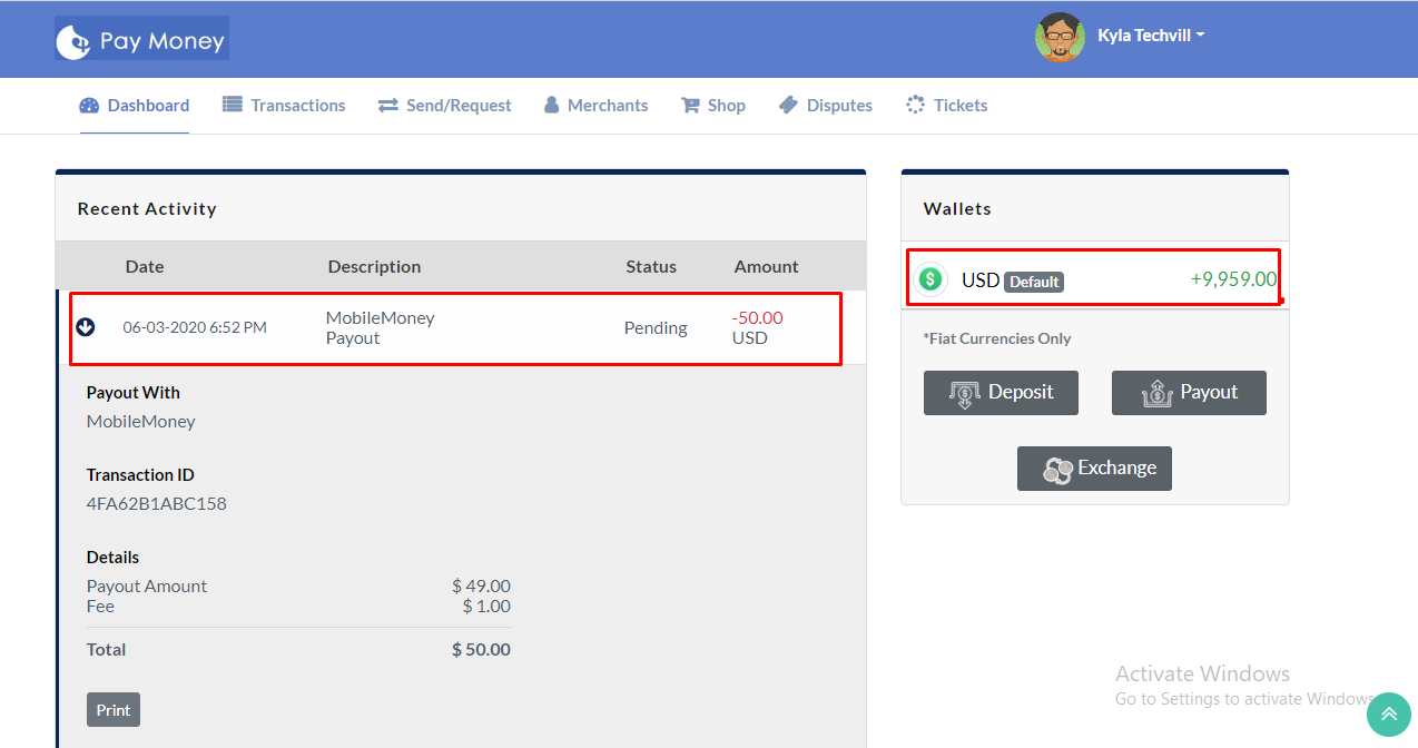 To Withdraw via MobileMoney as a payment method, follow the steps below;