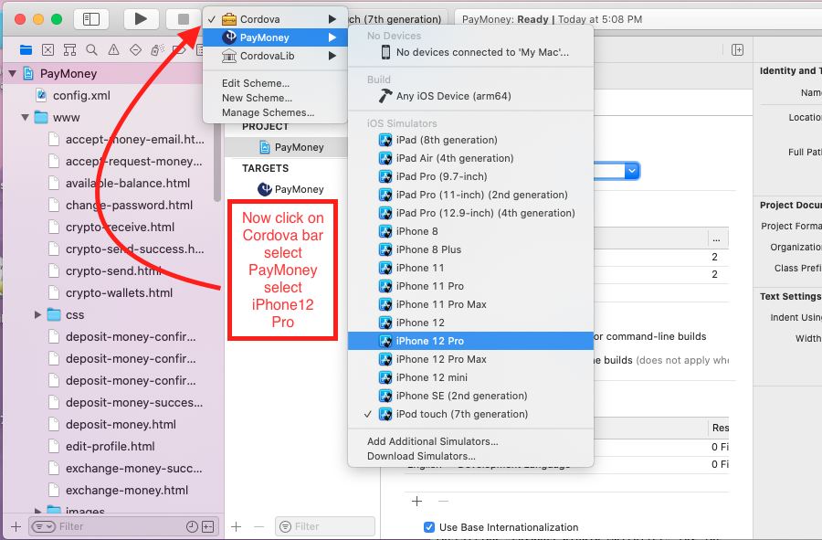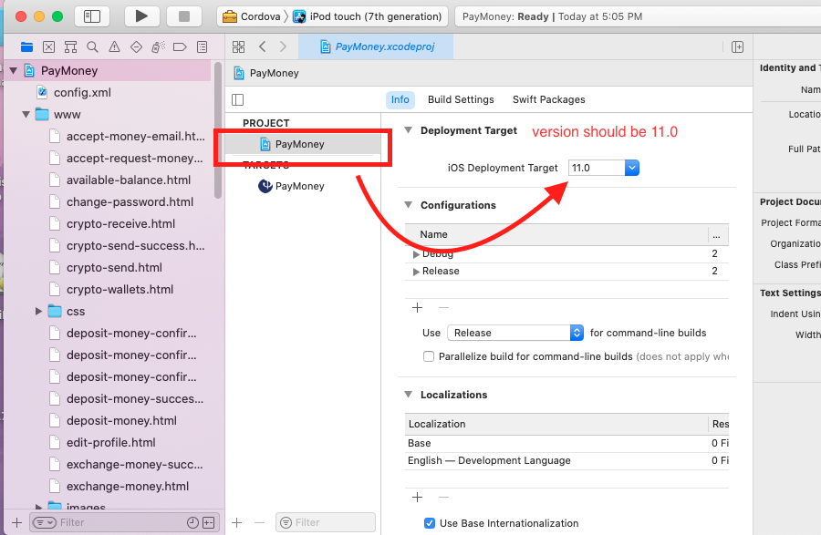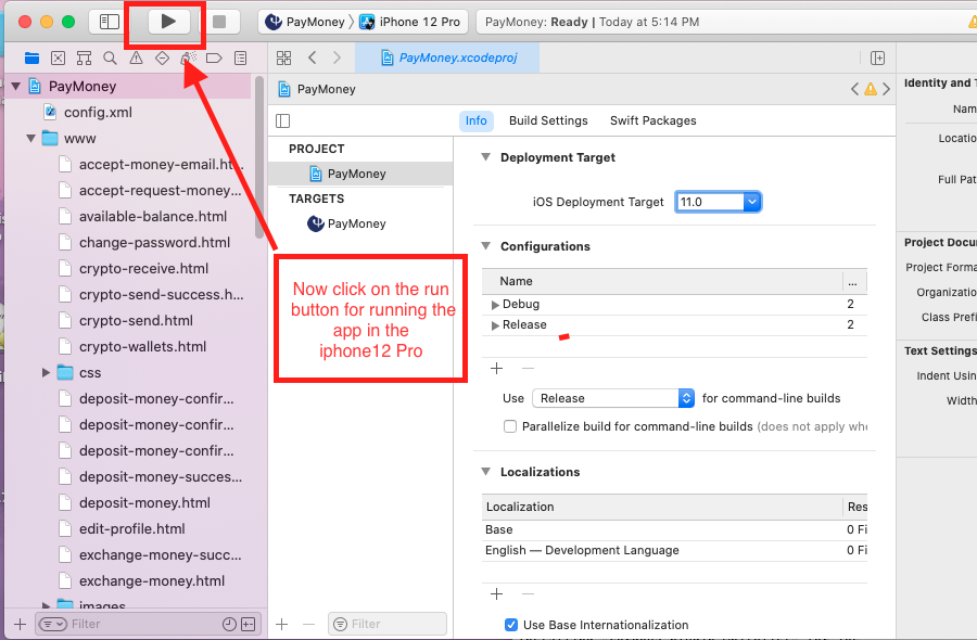 – Now go to platforms => ios => Paymoney.xcodeproj