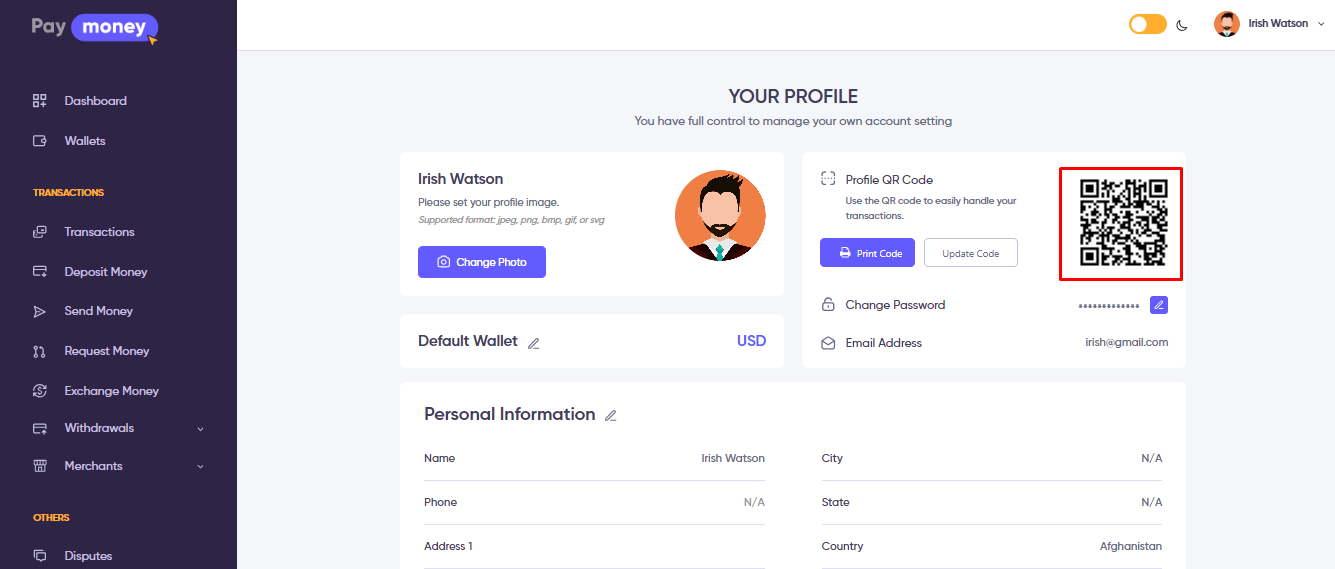 Once a QR Code is generated, a user can view/update their QR Code by going