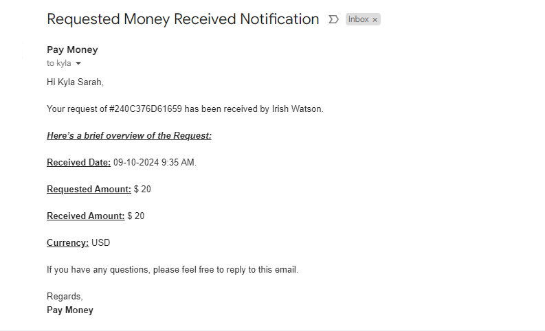 Accept Request Moneysection, where they can proceed to send the requested amount.