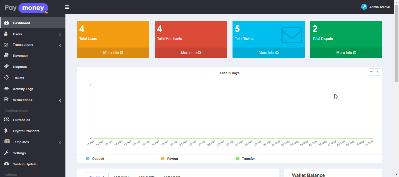 After receiving the notification, the admin will navigate to the Ticket section in the admin panel, where they will find a list of tickets.