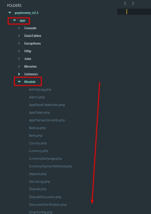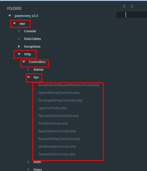 1) Go to “app/Http/Controllers/Api” and replace all the files with the “app/Http/Controllers/Api” folder files from the latest Pay Money Web Application v2.5
