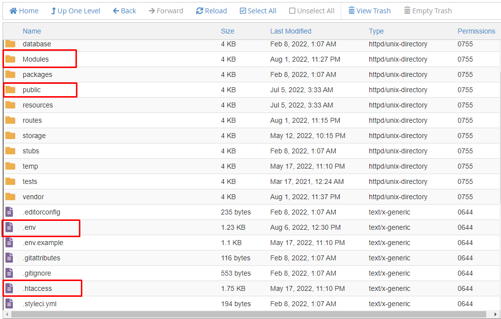 .env file, .htaccess, public folder & Modulesand then delete the selected files. -