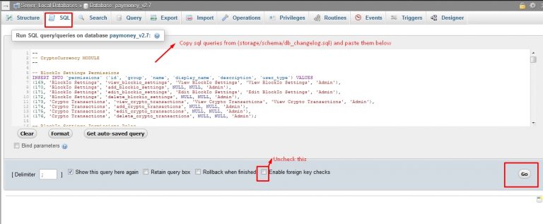 3) After downloading the SQL file, open it with any editor(notepad++, sublime text, etc) & copy the SQL file text and paste it like the following screenshot.