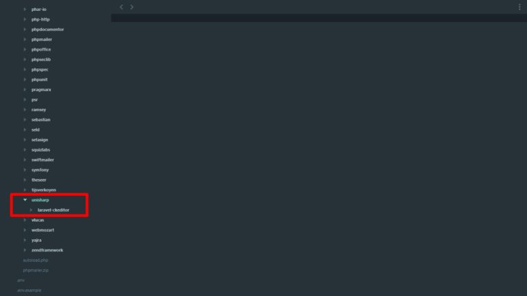 - 2) Go to (your_project\vendor) folder and delete ‘unisharp’ folder (see screenshot below).
