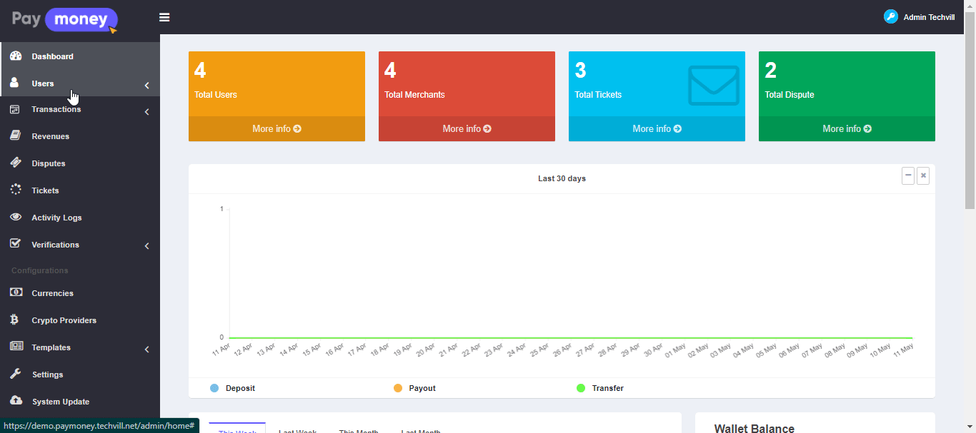 The Admin has the capacity to withdraw fund from a user from the admin panel.