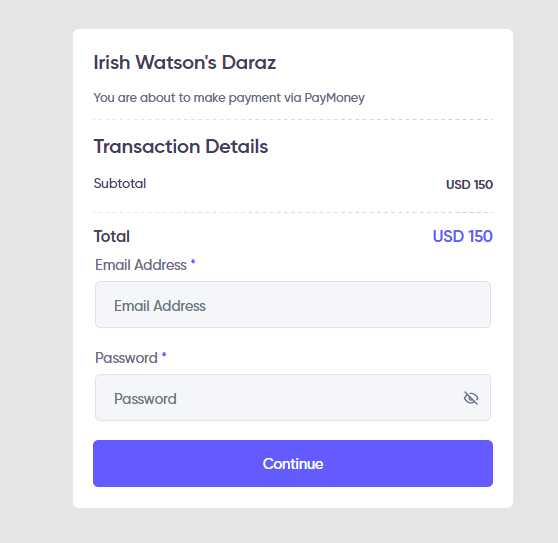 Step 6: After clicking on place order you will be redirected to Paymoney (Your site) page and asked you to log in. Make sure that not to give the same merchant credentials while login there, as user cannot pay to himself.